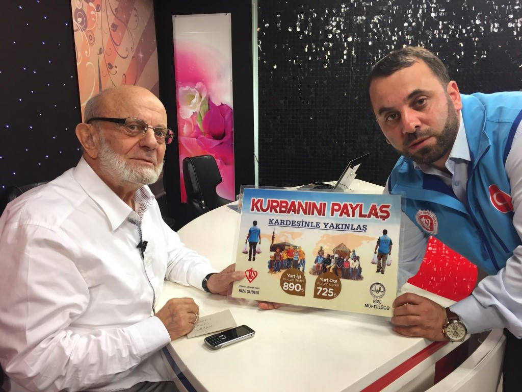 Diyanet İşleri Başkanlığı bünyesinde çeşitli görevlerde bulunan ve en son Rize Merkez Orta Cami’den yaş haddinden emekli olan, emeklilik sonrası ise din hizmetine Çay Tv ekranları vasıtası ile devam eden Türkiye’nin birçok şehrinden izleyici kitlesine sahip, Rize`nin tanınmış hocalarından Necati Hutoğlu, Türkiye Diyanet Vakfı’nın Vekâletle Kurban Bağışı kampanyasına Rize’den ilk bağışı yaparak destek verdi.