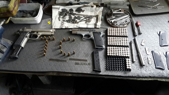 Ekipler, kaçak silah üretilen atölyeye yaptıkları baskında 1 tabanca, 1 kurusıkı tabanca, 10 kabza kapağı, 2 namlu, 18 tabanca fişeği, 160 kurusıkı fişeği ve silah imalatında kullanılan çok sayıda malzeme ele geçirdi.