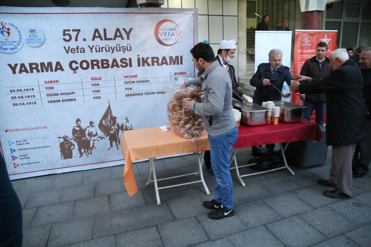 Ardından 103 yıl önce şehit düşen askerlerin içtiği Kırık Buğday yarma çorbasını, Belediye Başkanı Prof. Dr. Reşat Kasap ve görevliler vatandaşlara ikram ettiler.