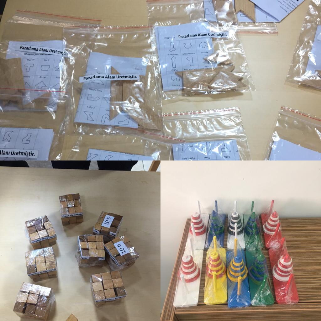 Bu oyunlar Hanoi kulesi, Soma küpü ve T- Tangram'dır. Üretilen oyunların tamamı ahşap malzemeden oluşturulmuştur. Ambalajlaması ve etiketlemesi yapılmıştır. Hazırlanan oyunlar öğrencilere, öğretmenlere ve gelen misafirlere tanıtılarak, satışı gerçekleşti..