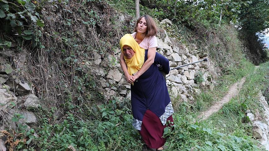 Rize'nin İkizdere ilçesinde, MS hastalığı nedeniyle yürüyemeyen ve annesinin sırtında taşımak zorunda kaldığı Nejla Baş Meraloğlu'nun evine yol bağlantısı yapılması için Valilik nezdinde girişimler sürüyor