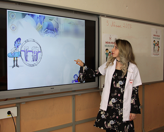 Herkesin düzenli olarak diş fırçalaması ve doktor kontrolünden geçmesi gerektiğini ifade eden Tepe, "Okul çağına gelen her çocuğu eğitim öğretime dahil edip sağlıklı şekilde yetiştirmek için çalışıyoruz. Bu nedenle sizlerin sağlığının korunması da bizler için çok önemli. Bu nedenle düzenli olarak doktorlarımız ve sağlık çalışanlarımız okullarımızı ziyaret ederek sizlere bilgiler veriyor ve taramalar yapıyor. Sizler de düzenli olarak dişleri fırçalayarak ağız ve diş sağlığınızı koruyabilirsiniz" diye konuştu.
