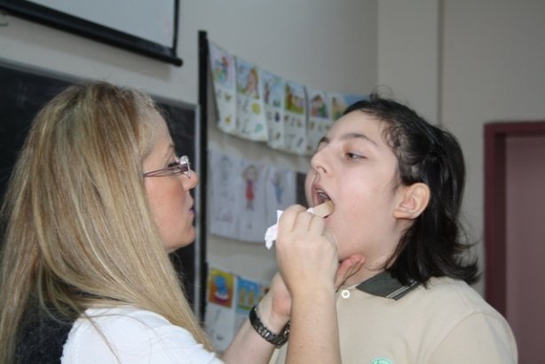 Öğrencilere ağız, çene ve diş sağlığı için düzenli diş hekimi muayenesi ve diş bakımı hakkında bilgi veren Toplum Sağlığı Merkezi Diş Hekimi Dt. Nurcan Yıldırım, Halk Sağlığı Müdürlüğü ile iş birliği yaparak bütün okullarda ağız ve diş sağlığı taraması yapacaklarını bildirdi.
