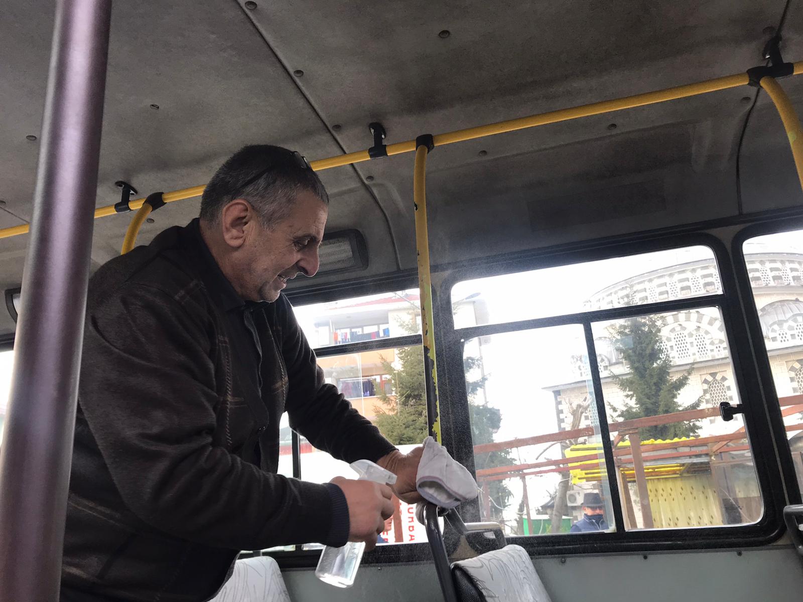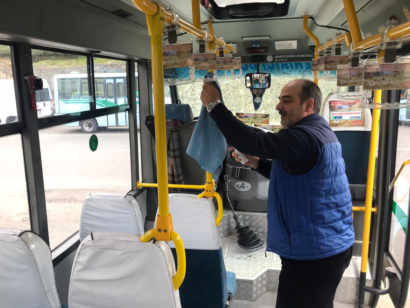 RİZE'DE TOPLU TAŞIMA ARAÇLARI TEMİZLENDİ
