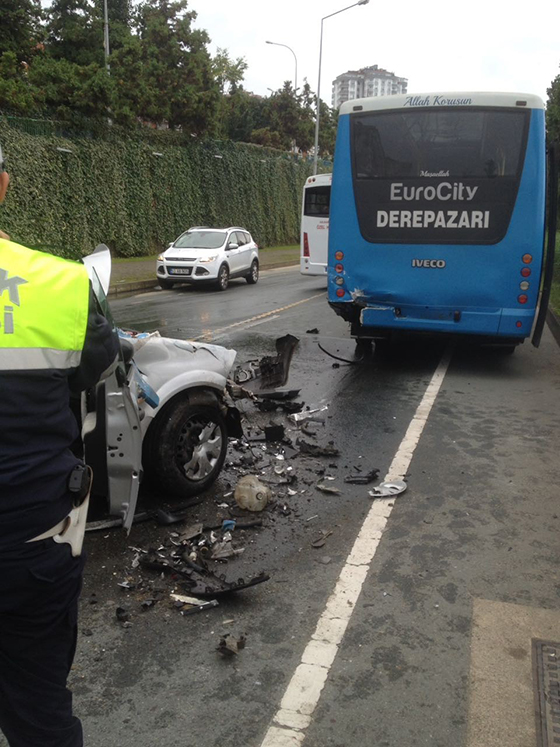 Edinilen bilgiye göre 06 DP 2387 plakalı araç Rize Merkez İstikametinden Derepazarı'na giden otobüse arkadan çarptı. Kazada hafif yaralanan 64 yaşındaki O.K. RTEÜ Eğitim ve Araştırma Hastanesi'ne kaldırılırken 56 Yaşındaki H.K. ağır yaralanarak Rize Devlet Hastanesi'nde tedavi altına alındı.Yoğun bakımda olan H.K.'nin hayati tehlikesinin devam ettiği öğrenildi.