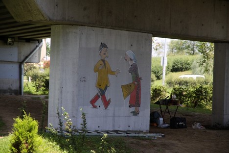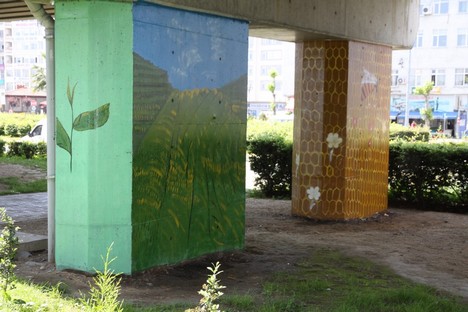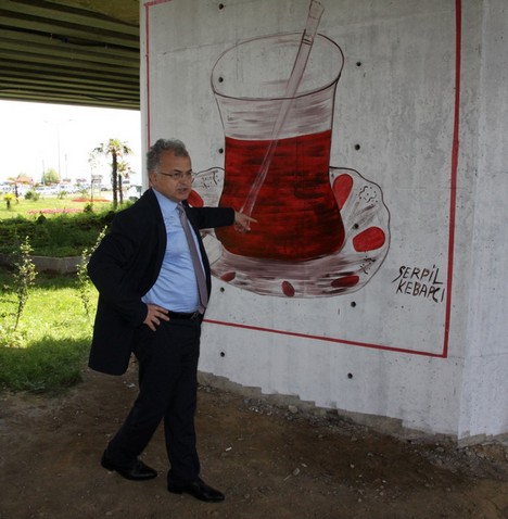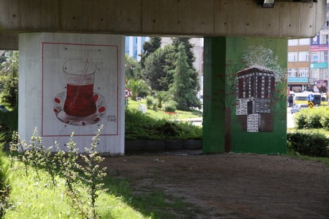Rize’de araç ve yaya trafiğine açık olan alanda viyadük ayaklarına Ressam Serpil Kebapcı tarafından yörenin kültürünü yansıtan resimler çiziliyor.