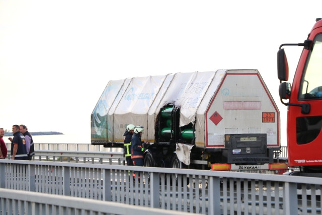 Rize'de sıkıştırılmış doğalgaz (CNG) tüpü yüklü tırın tekerinin patlaması sonucu yangın çıktı.