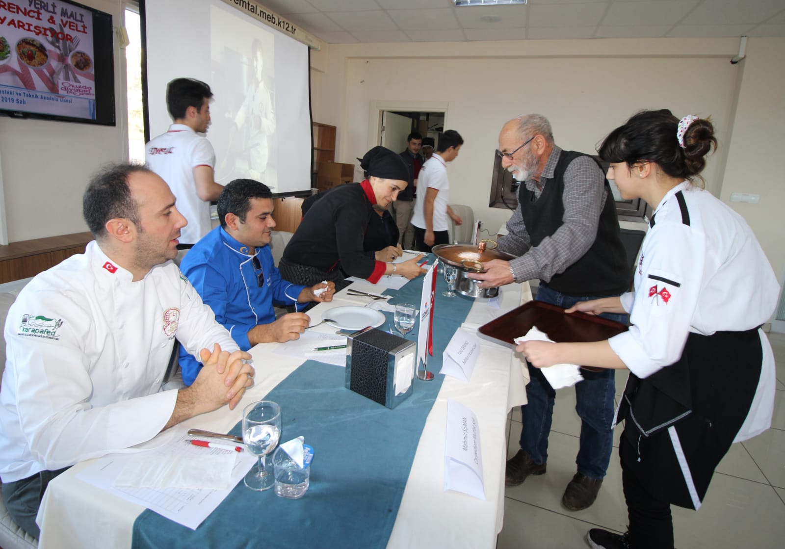 Öğrenciler ve aileleri önce okulun mutfağında yemeklerini hazırladı. Daha sonra servis edilen yemeklerin 4 jüri üyesi tarafından tatlarına bakıldı.