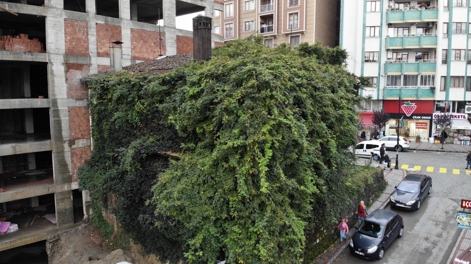 Rize’de Atatürk ve Cumhuriyet caddelerini birbirine bağlayan yolun hemen kenarında bulunan iki katlı sarmaşık kaplı ev görüntüsü ile herkesi şaşırtıyor.