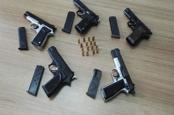 Sakarya'nın Hendek ilçesinde bir yolcuya ait mandalina kasaları içerisinde 5 tabanca ve mermiler ele geçirildi.