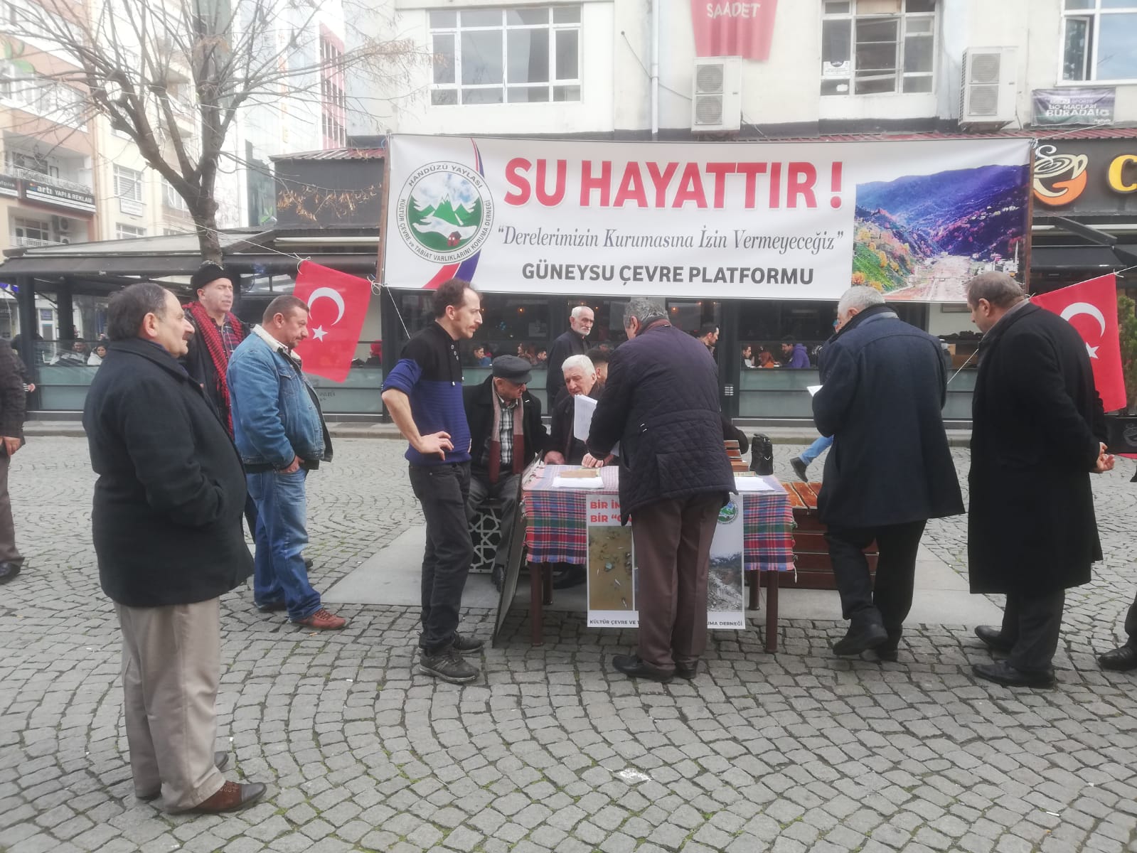 Topladığımız bu imzaları Sayın Cumhurbaşkanımıza, Çevre ve Şehircilik bakanlığımıza, Valiliğimize vereceğiz. Yasal ve hukuki yönden tüm haklarımızı arayacağız. Tek bir amacımız var Güneysu’da kurulan HES’in şuanda deremizi kuruttuğunu deredeki tüm suyun boruların içine çekilmek kaydıyla susuz bir dere ile karşı karşıya kalacağımız için bu nedenle bu yanlıştan dönülmesini istiyoruz. Rize’nin içme suyuna sahip çıkması gerekiyor.