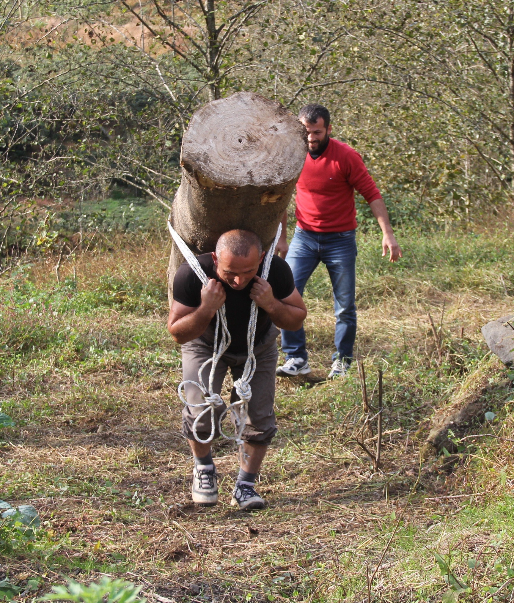 Rizeli Rambo 203 kilogramlık kütüğü sırtında taşıdı
