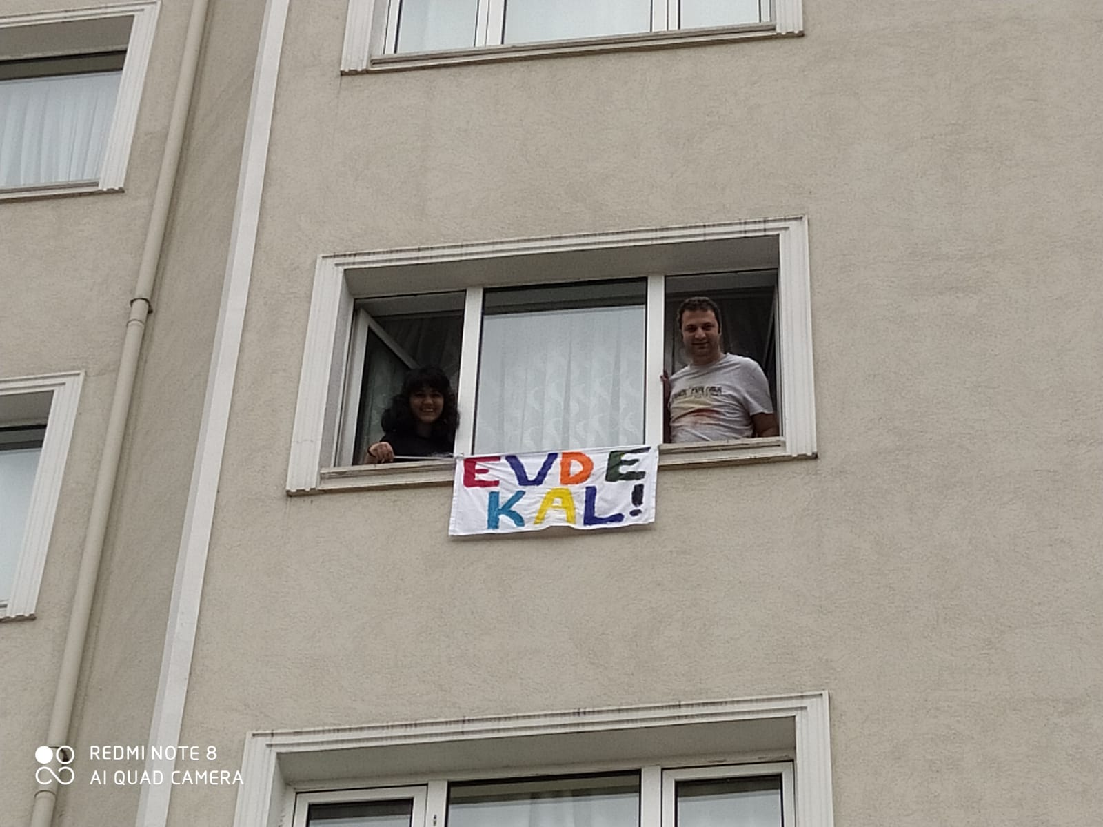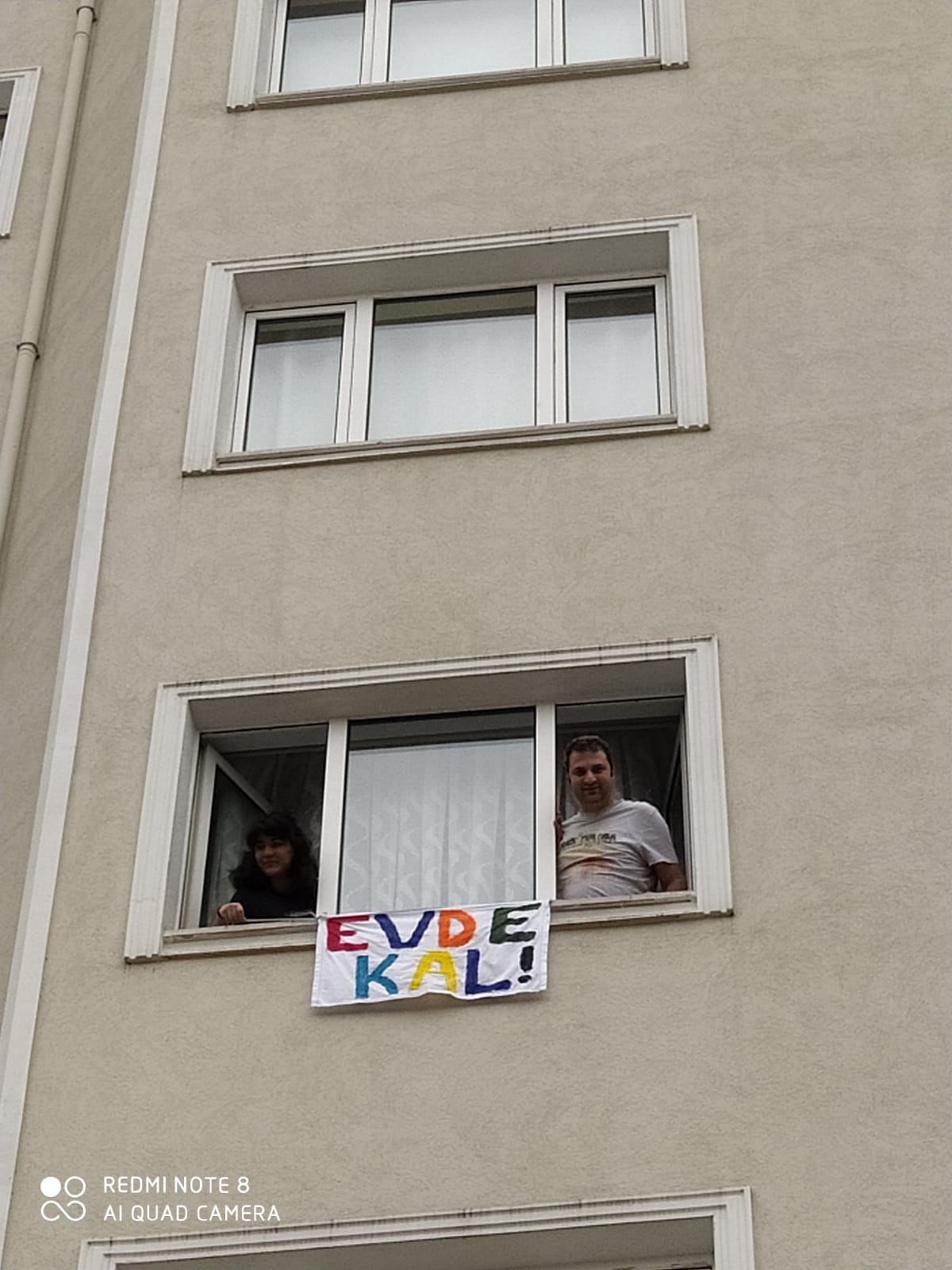 Reşadiye Mahallesi'nde camdan sarkıtılan "evde kal" yazılı pankart oldukça ilgi gördü. Koronavirüs tehdidine karşı vatandaşların evde kalması çağrısında bulunan Kahraman Özkul "elimizden geldiğince sesimizi duyurup, vatandaşlara evlerinde kalması gerektiğini hatırlatmaya çalışıyoruz.