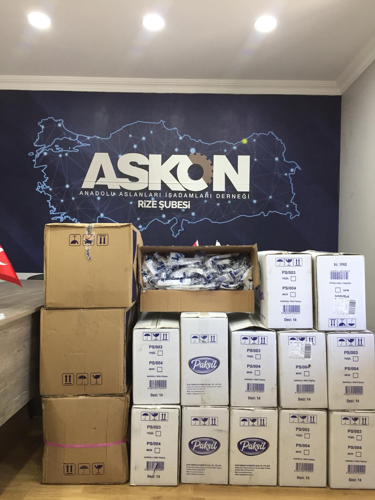 Anadolu Aslanları İşadamları Derneği (ASKON) Rize Şubesi, Kovid-19 ile mücadele kapsamında 10 bin adet maskeyi ücretsiz dağıttı.