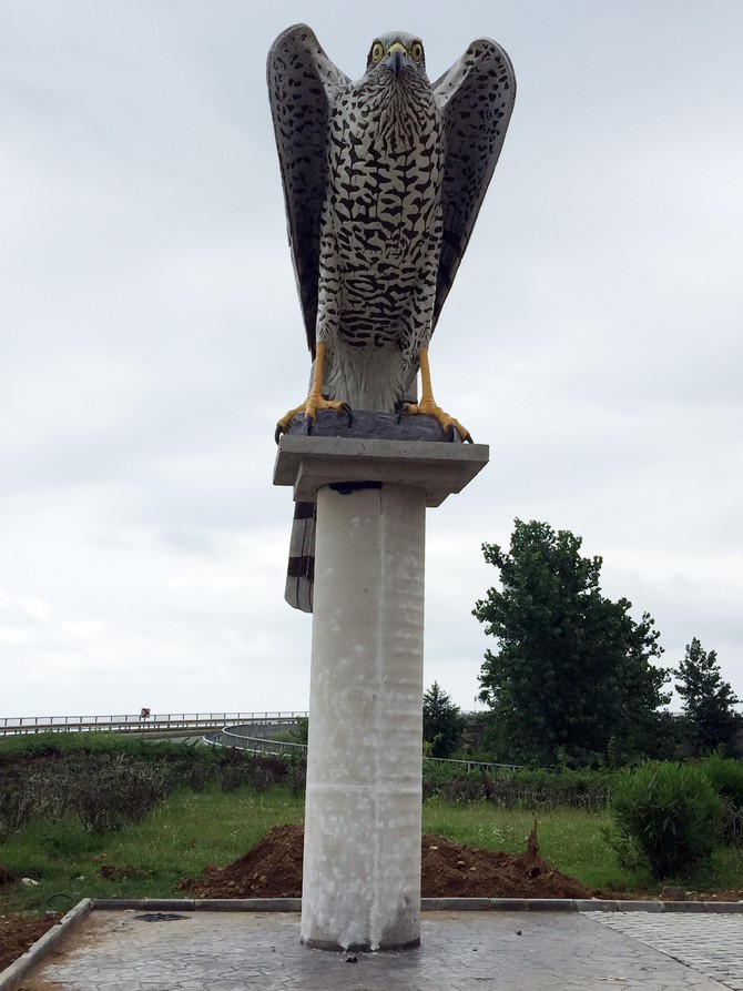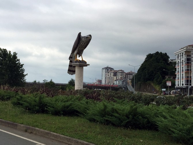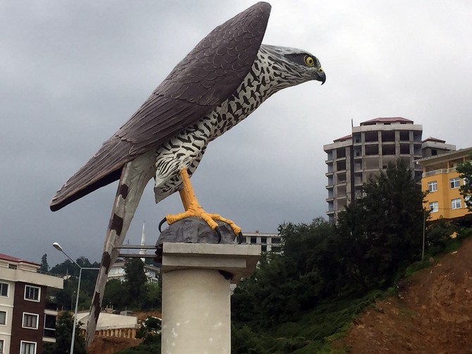 Rize'ye gelen misafir ve turistlerin hatıra fotoğrafı çektirebilmeleri için Rize Belediyesi tarafından kentin girişine dev bir Atmaca Heykeli yerleştirildi.