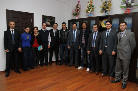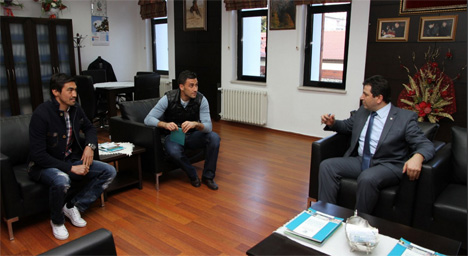 Yeşil Mavili takımın kalecisi David Loriya ve defans oyuncusu Samat Smakov, Recep Tayyip Erdoğan Üniversitesi Genel Sekreteri ve aynı zamanda Çaykur Rizespor Yönetim Kurulu üyesi olan Ali Rıza Köroğlu’nu makamında ziyaret etti.