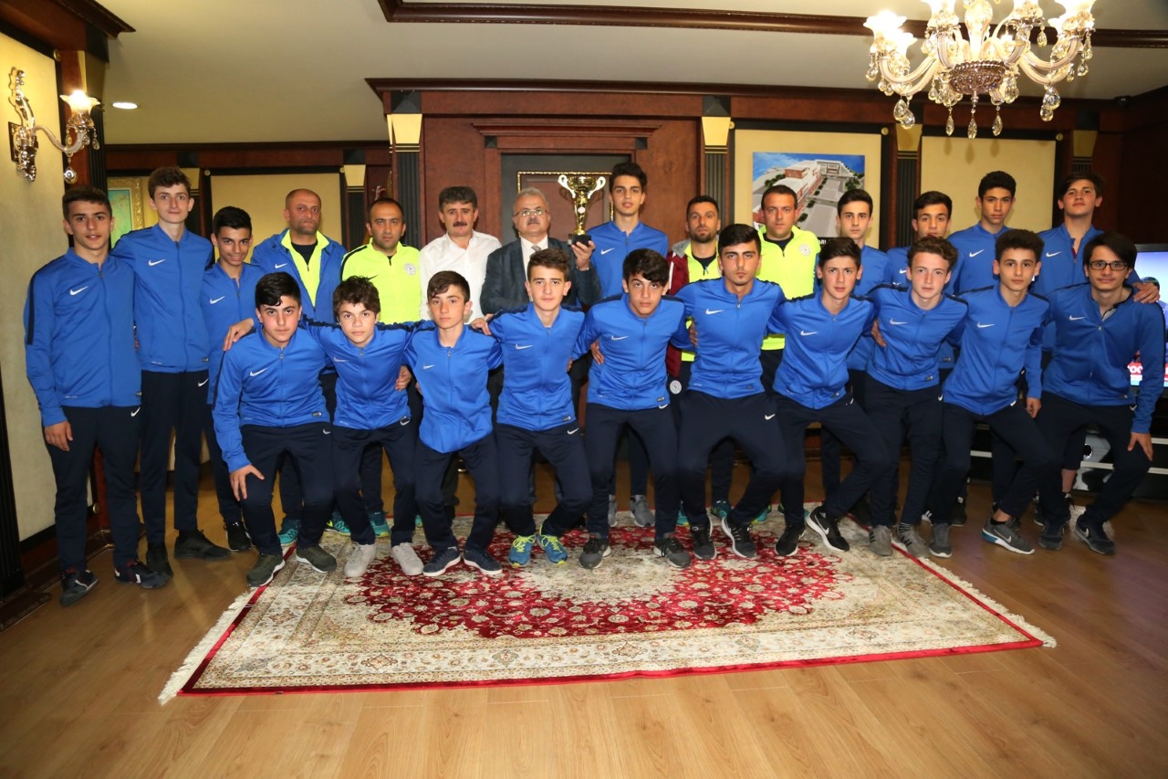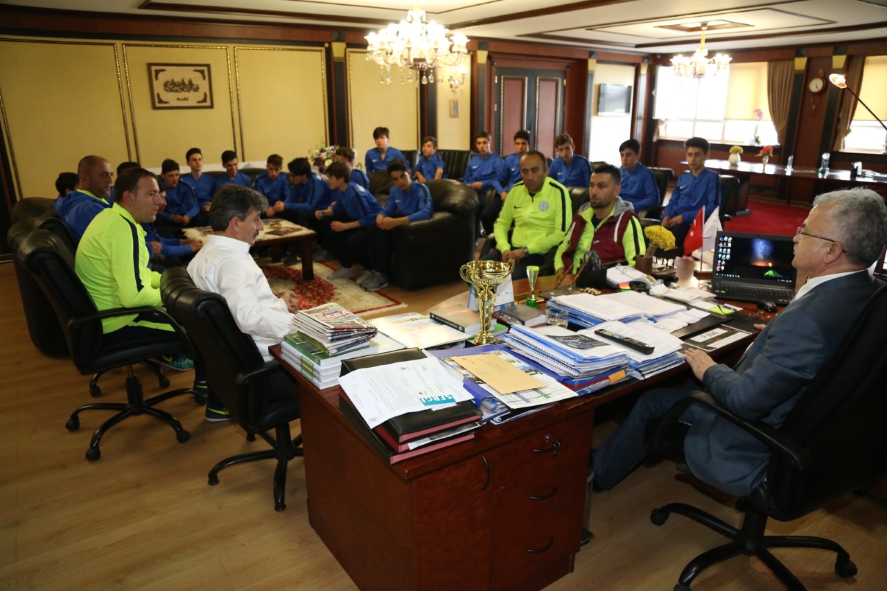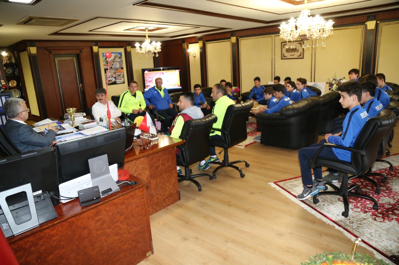 Geçtiğimiz yıl olduğu gibi bu yılda şampiyonluğu kaptırmayan Belediye U15 Futbol takımı; Genel Kaptan Aziz Topal, Antrenörler Cengiz Uçak, Kadir Cevahir, Yönetici Muhammet Akarsu ve Personel Ahmet Yağcı ile ziyareti gerçekleştiren şampiyon sporcular, şampiyonluk hikayelerini Belediye Başkanı Prof. Dr. Reşat Kasap’a anlattı.