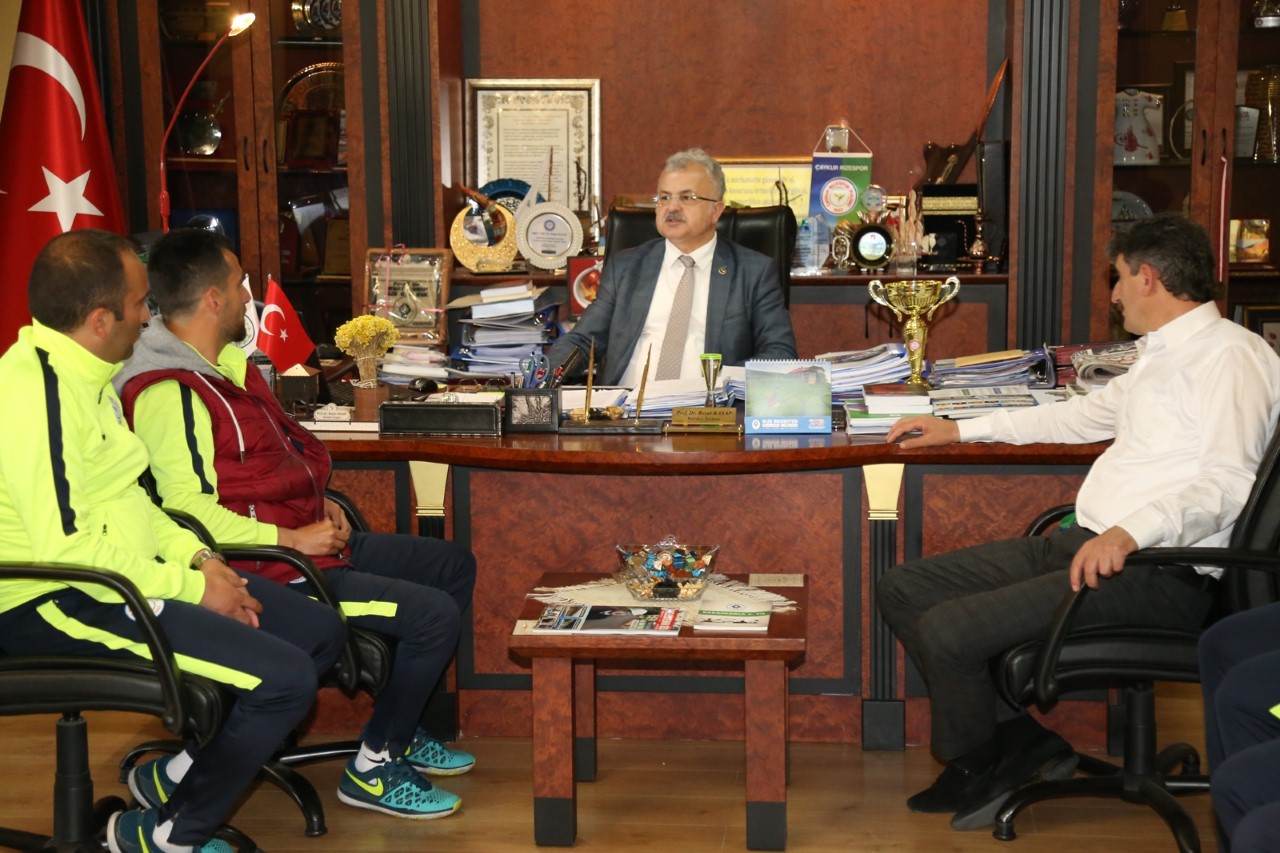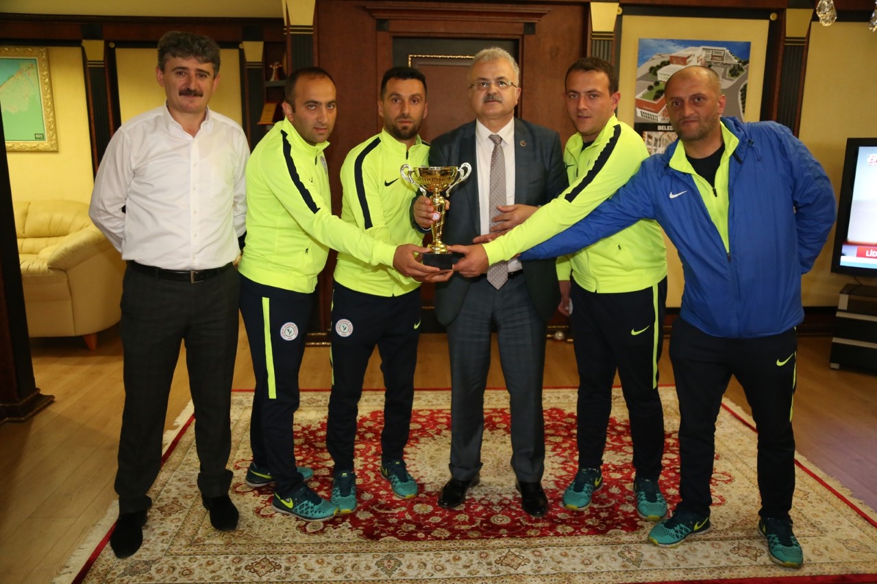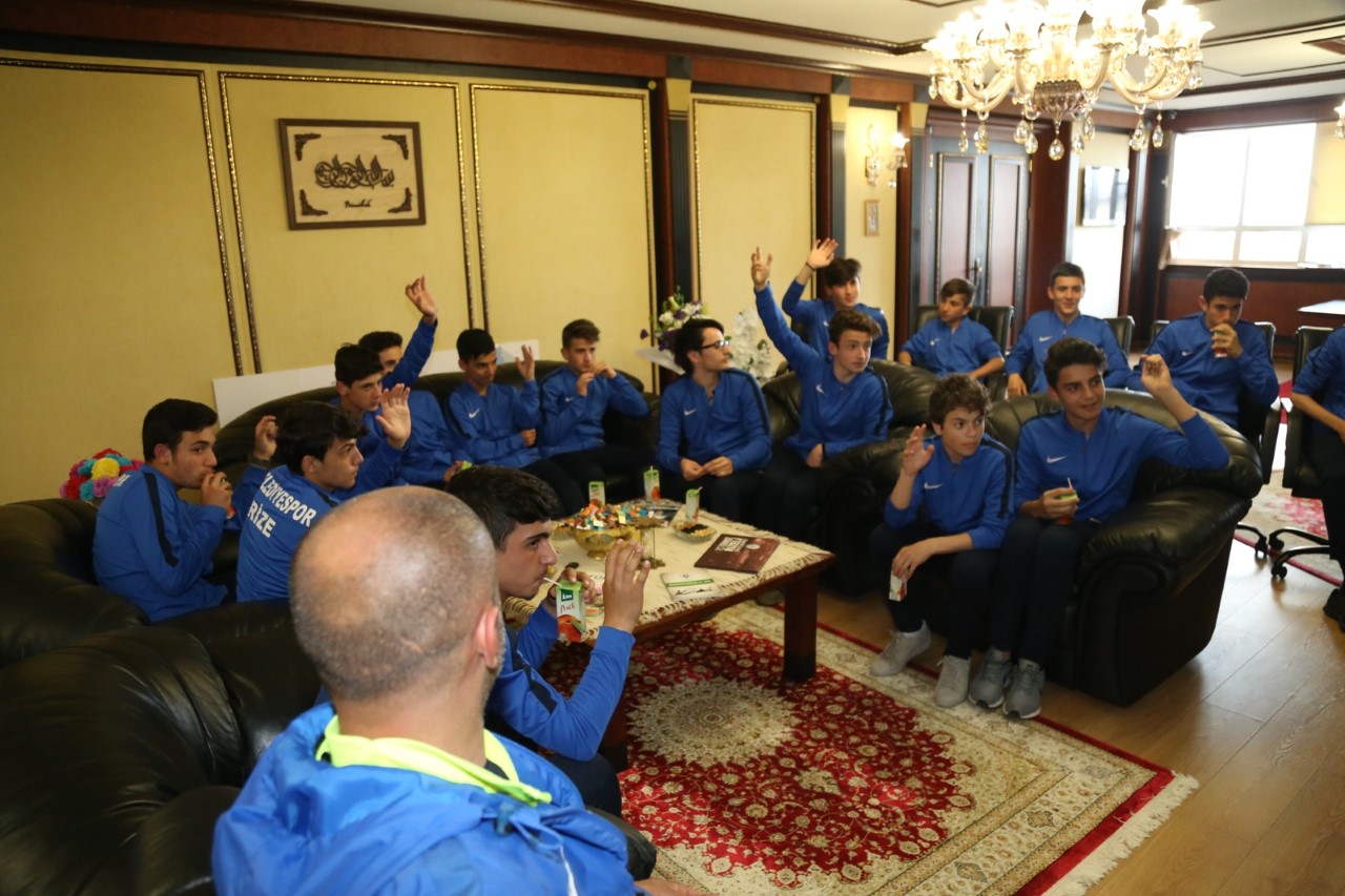 Rize’de düzenlenen U15 Ligi futbol müsabakalarında tüm rakiplerini yenerek Rize Şampiyonu olan Belediye spor U15 Futbol Takımı, Rize Belediye Başkanı Prof. Dr. Reşat Kasap’ı makamında ziyaret etti.