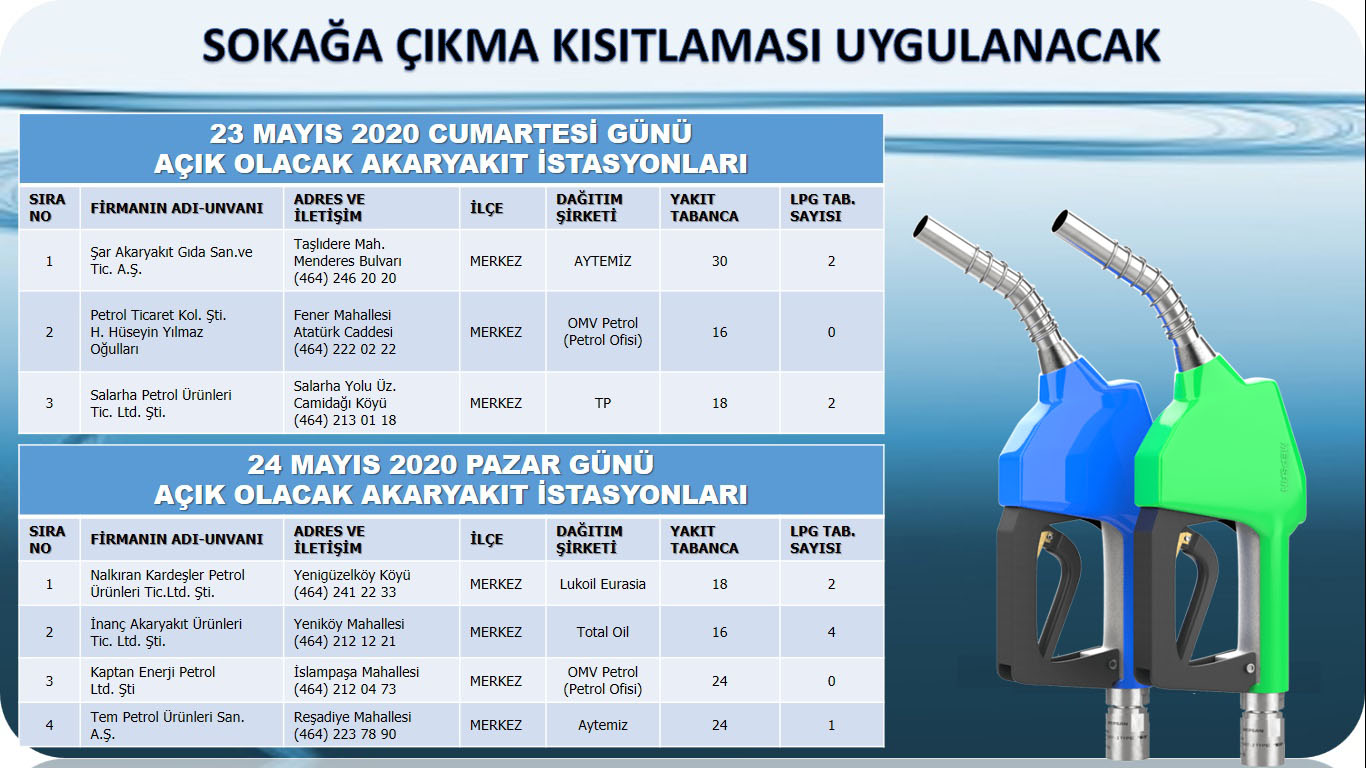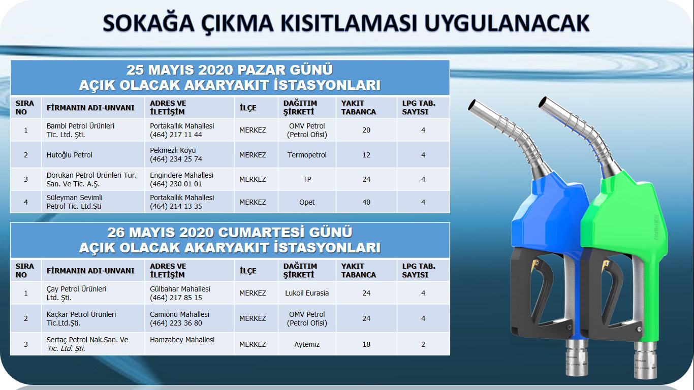 23 MAYIS CUMARTESİ GÜNÜ AÇIK OLACAK AKARYAKIT İSTASYONLARI
