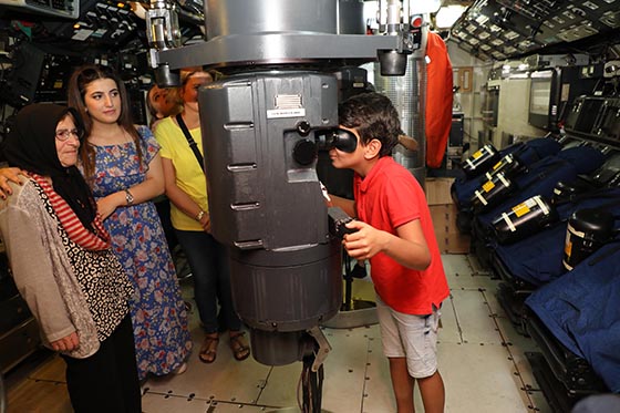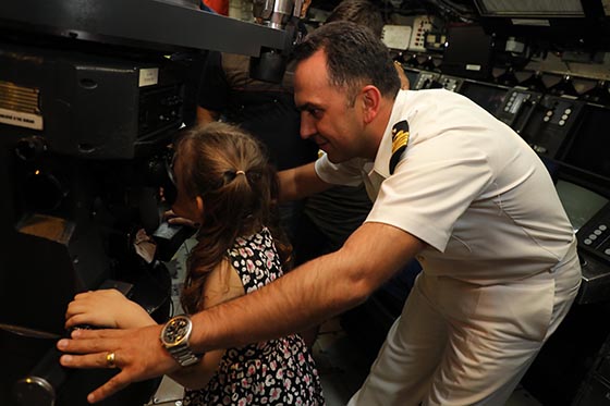 Denizaltıyı yakından görmek isteyen vatandaşlar, askeri görevliler tarafından gemi hakkında bilgilendirildi.