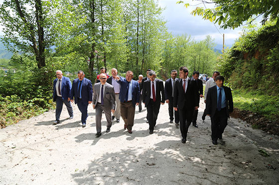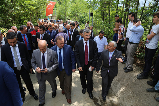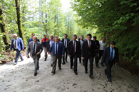 Rize Valisi Erdoğan Bektaş, Kalkandere İlçesi Çağlayan, Seyrantepe ve Ünalan Köylerini birbirini bağlayan grup yolunda incelemelerde bulundu.
