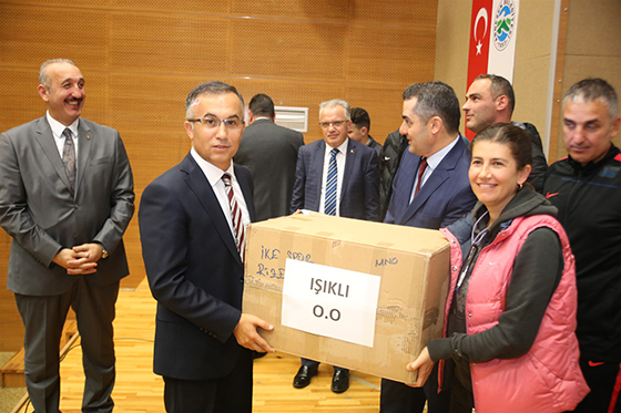 Kaymakamlıktaki programın ardından Ardeşen Belediye Başkanlığına geçen Vali Çeber, burada Ardeşen Belediye Başkanlığınca, ilçedeki ilk ve orta dereceli okullarda öğrenim gören öğrencilere ‘Spor malzemesi ve ekipmanı’ dağıtım programına katıldı.