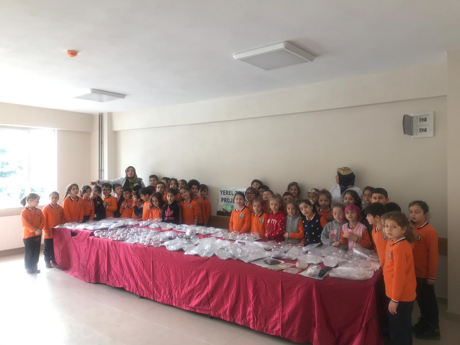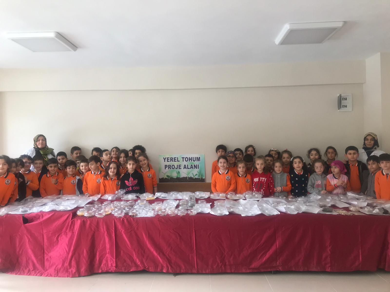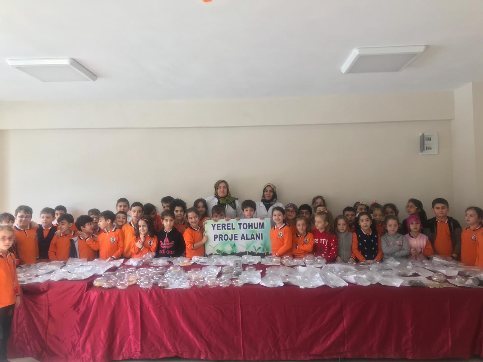 Hüseyin Yardımcı İlkokulu öğretmenleri Emine Kalender ve Hümeyra Kaya, okul bahçesinde öğrencileriyle birlikte küçük çapta başlattıkları, “Yerli Tohum Milli Tarım” projelerini velilerin de katılımıyla büyüterek bütün okula ve çevre sakinlerine yaymayı başardılar.
