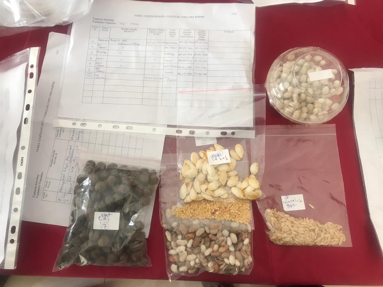 Tarım İl Müdürlüğünün de destek verdiği projede, tohumların nereden toplandığı ve kaç yıllık oldukları tespit edilerek tasnif edildi.