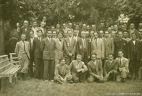 (Üsteki Fotoğraf) RİZE’de ÇAYIN BAYRAMI VAR : Ziraat Çay Bahçesi’nde kutlanan çay bayramlarından birinde - 20 Haziran 1944. Kazım Kartal (1), Zihni Derin (2), Murat Zırh (3), Hilmi Somay (4).