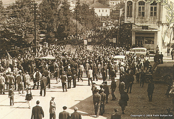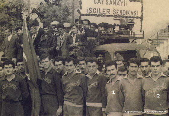 CUMHURİYET BİR COŞKUDUR: Yerel giysilerini kuşanmış Çay Sanayi İşçileri Sendikası işçileri, Rizespor ve Fener Gençlik futbolcuları ile Cumhuriyet bayramı törenlerinde – 1959. Kayhan Köseoğlu (1), Dündar Akdeniz (2)