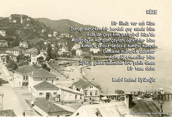 ÇAYI BATUMDAN GETİRDİ: Rize’de ilk çay deneme dikimini dönemin Rize Ticaret Odası Başkanı Mustafa Hulusi Karadeniz, Batum’dan getirdiği çay tohumlarını Rize’deki evinin bahçesine dikerek yapmıştır. (Rize 1922)