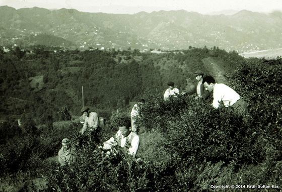 UYGULAMALI EĞİTİM: Sovyetler Birliği’nden (Gürcistan) 1937-1940 yıllarında satın alının 70 ton çay tohumuyla yaygınlaştırılan üretim sonucu oluşturulan Merkez Fidanlığı’nda çay yapraklarının nasıl toplanacağı öğretiliyor - 1941