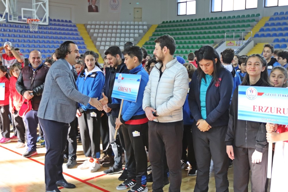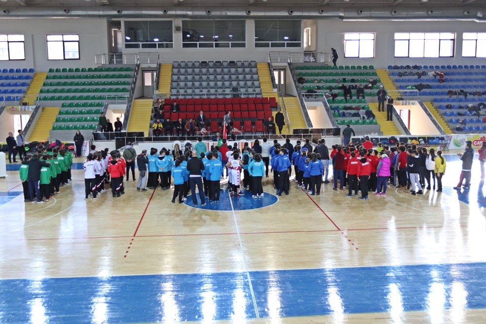 Konuşmanın ardından Kızlarda Yeni Şehir Spor Salonunda Erkeklerde Güneysu İlçe Spor Salonunda gruplarının ilk müsabakaları başladı.