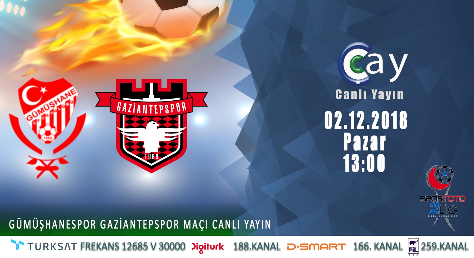 Türkiye Futbol Federasyonu 2. Lig Beywz Grup 15. Hafta Mücadelesinde Gümüşhanespor evinde Gaziantepspor'u Konuk edecek.Karşılaşma Pazar günü saat 13:00'de Çay Tv'de Naklen Yayınlanacak.