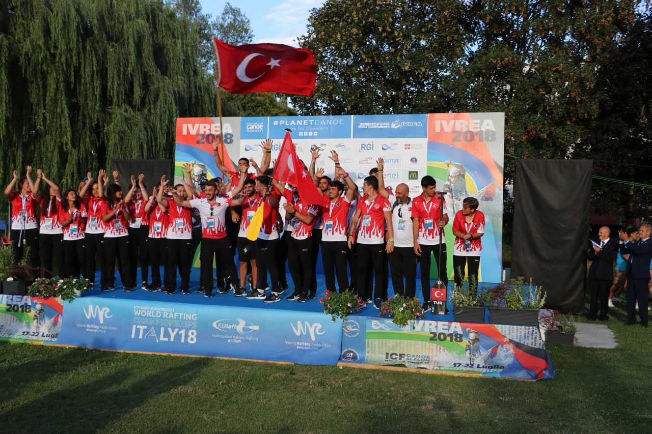 12 ülke ve toplam 300 sporcu ile gerçekleşen 2018 R4 u19 ve u23 dünya rafting şampiyonası italya dan istiklal marşimizi okutarak döndük ve u23 mix kategorisinde 1.lik 5 altın