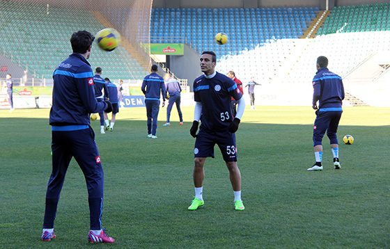 Çaykur Rizespor’da Cumartesi günü oynanacak olan Eskişehir maçı hazırlıkları sürüyor. Maçın oynanacağı Rize Yeni Şehir Stadyumu'nda teknik direktör Hikmet Karaman’ın yönetiminde yapılan antrenmanda eksik oyuncu yoktu. Antrenman öncesi Çaykur Rizespor yöneticilerinden Mehmet Erdoğan’ın organize ettiği kurban kesimi yapıldı. Kesim ardından gelen bir imam hatip dua ederken, futbolcular ve teknik heyet kurbanın kanını alınlarına sürerek antrenmana çıktılar.