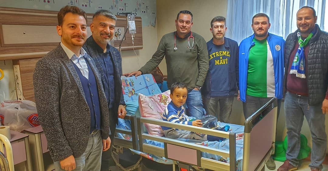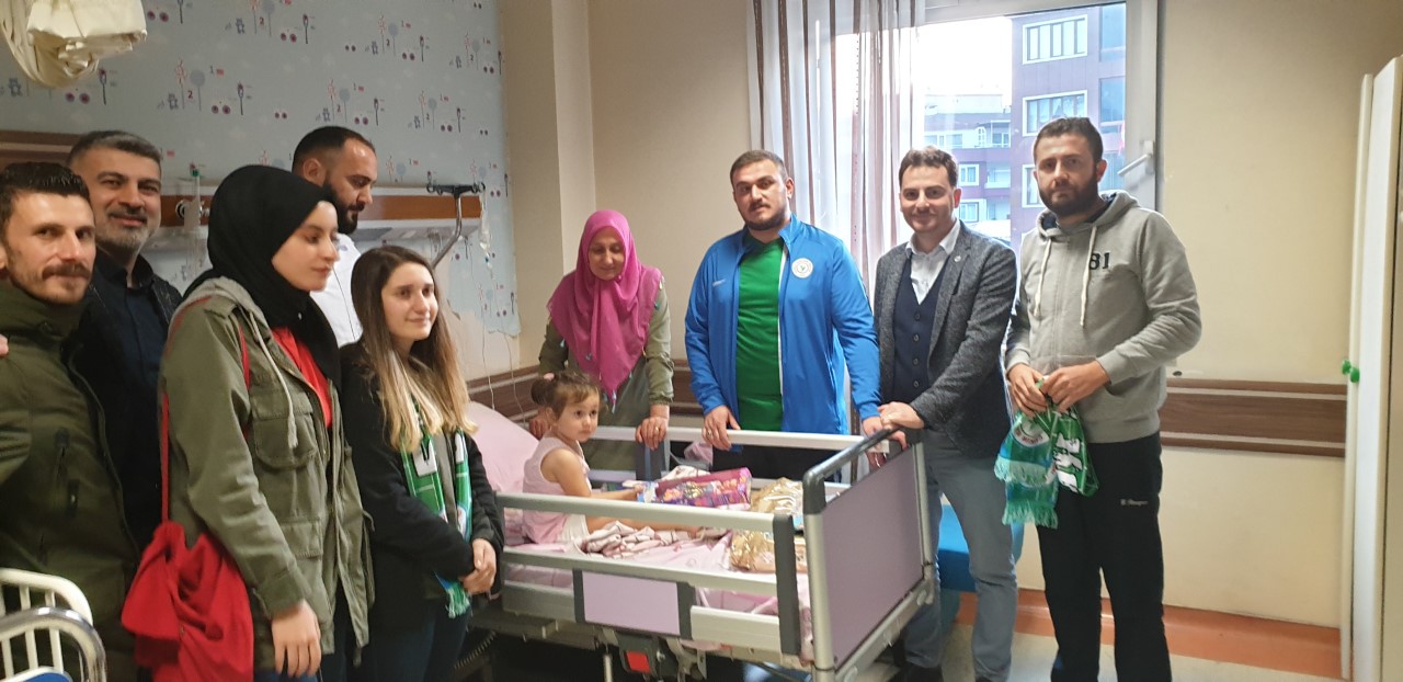 Ziyarete katılan grup yönetimi çeşitli oyuncaklar ve Rizespor formaları çocuklara hediye ederek hem çocuklara hem de ailelerine moral verdi.