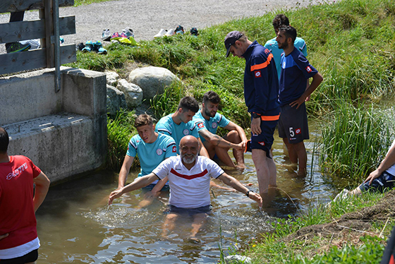 12 Gündür Avusturya kampında yoğun tempo ile çalışan Atmacalar idman sonrası fırsat buldukça ırmak”a girerek serinliyorlar.Yeni sezon hazırlıklarının ikinci ayağı olan Avusturya kampında günde 3 idman ile hazırlıklarını sürdüren Atmacalar yoğun temponun heraretini kamp alanı içinde bulunan İrmak” a girerek serinliyorlar. İdman sonrasında başta Teknik Direktör Hikmet Karaman olmak üzere tüm sporcular akarsu içine girerek idman yorgunluğunu atıyorlar