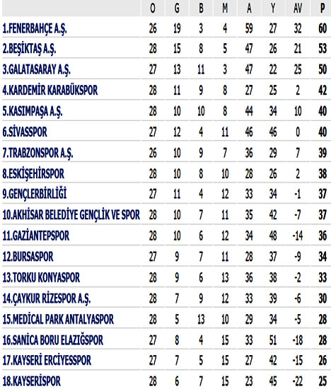 Spor Toto Süper Ligin 28. haftasında sona eren karşılaşmalarda alınan sonuçlar, oluşan puan durumu ve haftanın panoraması şöyle: