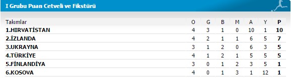 4. maçlar sonunda I Grubu'nda son durum şu şekilde;