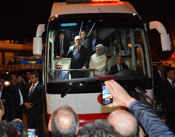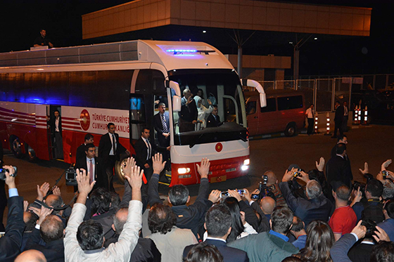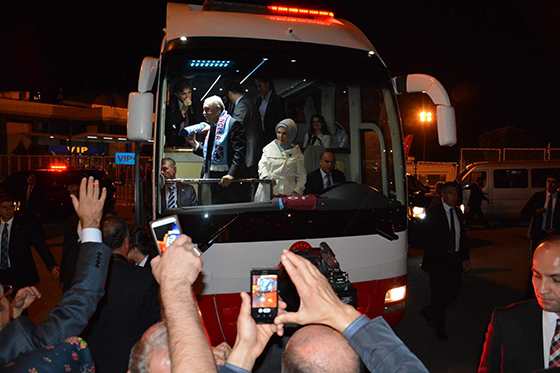 Konuşmasının ardından otobüse çıkan Trabzonlu Gençler Taraftar Grubu Başkanı Mehmet Fındıkçı tarafından Cumhurbaşkanı Erdoğan’a bordo-mavili atkı da takıldı. Erdoğan, daha sonra konaklayacağını otele gitti. Otel önünde vatandaşların geçmiş Kurban Bayramı'nı tebrik eden Erdoğan, dinlenmek için otele girdi.