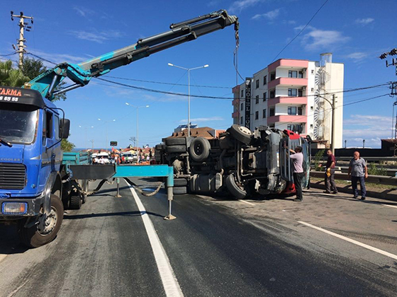 Edinilen bilgiye göre, Trabzon'dan Rize istikametine gitmekte olan Ali T. yönetimindeki 19 HN 161 plakalı TIR, Arsin ilçesi Yanbolu Köprüsü mevkiinde dikkatsizlik ve tedbirsizlik sonucu TIR'ın kontrolünün kaybedilmesi sonucu yola devrildi. Kazada TIR sürücüsü Ali T. yaralanırken, TIR'da yüklü olan tuğlalar yola saçıldı. Yola saçılan tuğlalar ve devrilen TIR nedeniyle ulaşım Trabzon'dan Rize istikametine bir süre dururken, TIR vinç yardımı ile yoldan kaldırıldı. Yola saçılan tuğlaların da temizlenmesi sonrasında yolda tekrar trafik akışı sağlanırken, trafik polisi ekipleri bölgede başka bir kazanın yaşanmaması için yoğun çaba harcadı.