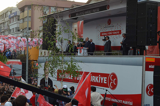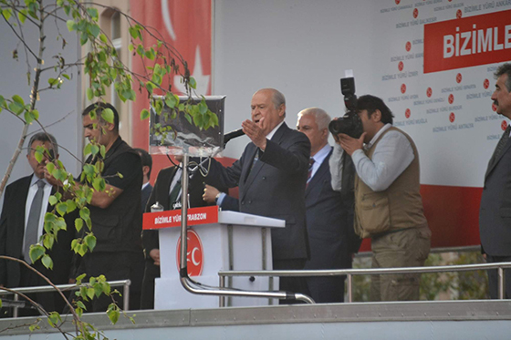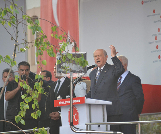 “Trabzonlu Kolbastı’yı bile huzurla oynayamıyor. Hamsi para etmiyor” diyen Bahçeli, “Fındık üreticisi şikayetçi, dert küpü. İşte Türkiye’nin gerçeği budur, işte Trabzon’un acı manzarası bundan ibaret. Erdoğan ve Davutoğlu bu gerçeklerle yüzleşmekten sürekli kaçıyorlar. Sanal sorunların peşinde koşuyorlar. Sahte mağduriyetlerden medet umuyorlar. Gerçek mağdurun Trabzon sokaklarında, kahvelerinde, mahallelerinde olduğunu görmüyorlar, görmek istemiyorlar” şeklinde konuştu.