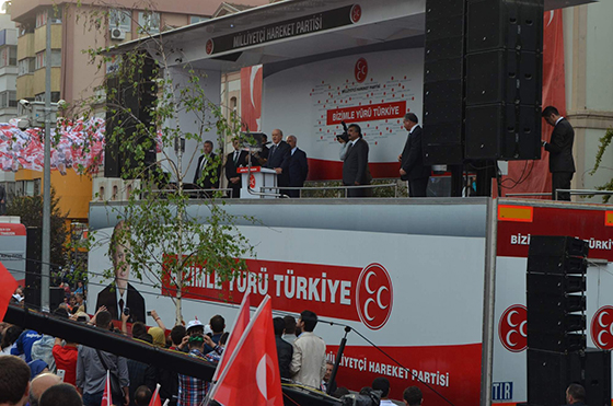 “Geçtiğimiz günlerde Trabzon'a gelmiş, yeni bir şey söylememiş, bilinenleri yalnızca tekrar etmiştir. Davutoğlu'nun vaat ettiği Trabzon Güney Çevre Yolu Projesi MHP'nin projesidir. MHP iktidarında proje ihalesi yapılmış ve bundan 13 yıl önce yapıma hazır hale getirilmiştir. Bu güzide proje AKP tarafından tam 13 yıldır tozlu raflarda bekletilmiştir. Davutoğlu’nun bu zamana kadar aklı neredeydi, nelerle uğraşıyordu? Güney Çevre Yolu’nu tamamlamak inşallah bize nasip olacaktır. Yıllar yılı ödenek sıkıntısı nedeniyle ağır aksak ilerleyen Karadeniz Sahil Yolu'nun önünü de MHP açmıştır…AKP iktidarının tam 3 seçimdir, Trabzon'u oyaladığı ve bir türlü bitirip hizmete açamadığı Akyazı Projesi Trabzon'a bir lütuf değildir. Trabzon'a ve Trabzonspor'a anasının ak sütü gibi helaldir. Çünkü Trabzon Akyazı'yı almak için büyük bedeller ödemiştir. Hüseyin Avni Aker Stadı, hemen yanıbaşındaki Yavuz Selim Stadı, 19 Mayıs Kapalı Spor Salonu, Orman Misafirhanesi, Trabzon Otobüs Terminali ve Akçaabat Fatih Stadı Trabzon'un elinden alınmıştır. Karşılığında da Akyazı Stadı'nın mülkiyeti Trabzonspor'a verilmemiş, sadece tahsis edilmiştir. İnşallah iktidarımızda, Akyazı Projesi için Trabzon'dan alınanlar Trabzon'a geri verilecektir. Ve Akyazı Projesi için dolgu yapılan alanın bütün geliri de Trabzonspor'a tahsis edilecektir. Trabzon ulaşımda sahip olduğu elverişli konumunu değerlendirmeli, demiryolu hatlarıyla da ulaşım sistemi güçlendirilmelidir. Bu bakımdan Yatırım Programı'nda yer alan Erzincan-Gümüşhane-Tirebolu-Trabzon Demiryolu Projesi'ni de önemsiyor ve elbette olumlu buluyoruz. Ancak, biz MHP olarak Trabzon'a, Karadeniz'e ve Türkiye'ye bir proje daha sunmak istiyoruz. Samsun-Trabzon-Hopa-Batum Demiryolu Projesi'ni Trabzon, Karadeniz ve Türkiye için çok daha verimli ve yararlı bir proje olarak değerlendiriyoruz. Bu projenin bir ucu Bakü'ye, bir ucu da Almatı'ya uzanacaktır. Bu proje bilim adamlarımızın, çeşitli sivil toplum kuruluşlarımızın da önerdikleri Demir İpekyolu Projesi'dir. Demir İpekyolu Projesi ile Türkiye, Trabzon üzerinden Avrasya ve Türk Dünyası ile barış ve işbirliği zemininde bütünleşecektir. Demir İpekyolu Projesi ile kıtalar, Trabzon ve Karadeniz üzerinden birleşecektir. Trabzon küllerinden yeniden doğacaktır. Trabzon Karadeniz’in iş ve aş üreten kutup yıldızı olacaktır.”