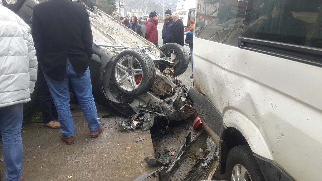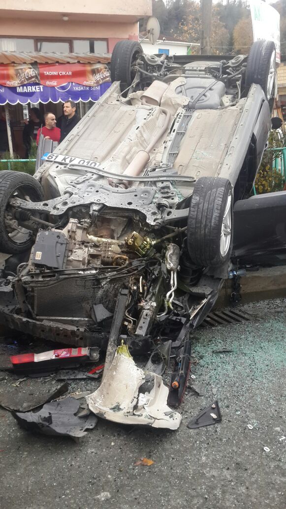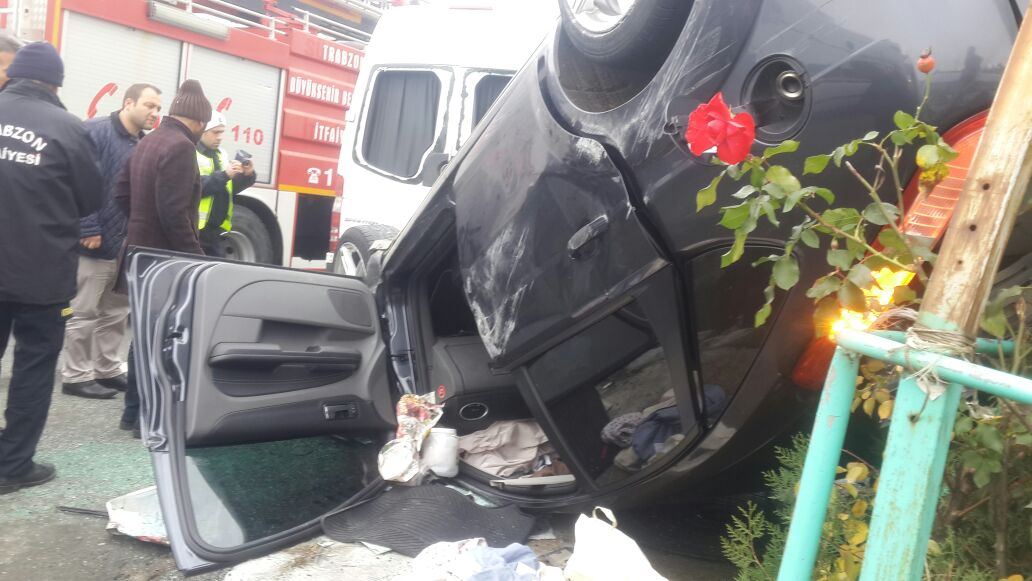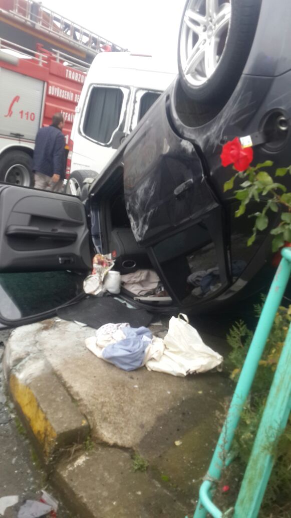 . Trabzon'un Sürmene ilçesinde meydana gelen kaza da kontrolden çıkan otomobil takla attı kazada 2 kişi yaralandı. Kaza bugün öğle saatlerinde sahil yolunda meydana geldi. 61 KV 010 plakalı otomobil Emniyet müdürlüğü önünde kontrolden çıkarak bariyerlere çarpıp takla attı. Takla atan otomobil önünde seyreden minibüse de arkadan çarptı. Kazada 2 kişi yaralandı.