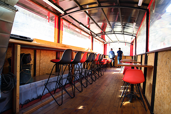 Tırı buraya park ederek dorsesini de mutfak olarak düzenleyen Velioğlu ile Kul, insanların yemek yerken sıkıntı yaşamamaları için de dorse üzerine bir kat yapma kararı aldı. Ahşap ve demir profillerle dorse üzerine bir kat çıkarak çatısını da yapan işletmeciler, ilçede yemek sektöründe farklı bir görünümle hizmete başladı.