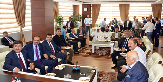 Bayramlaşma töreninde belediyeye gelen misafirlere kavurma, pilav, börek ve tatlı ikram edildi.