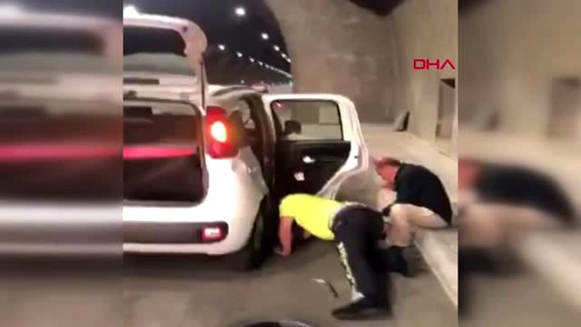 TRABZON'da, tünel içerisinde otomobilinin lastiği patlayan engelli sürücünün yardımına, trafik polisi koştu. Polisinin lastiği değiştiği anlara ait görüntüler, paylaşıldığı sosyal medyada övgü topladı.