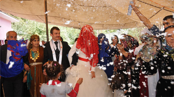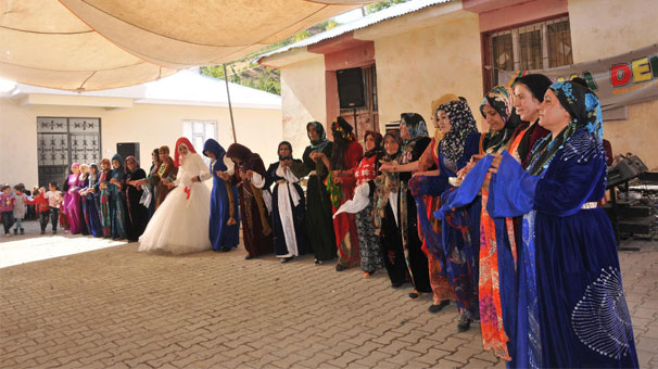 Beldenin Bağlarbaşı Mahallesi’ndeki okul bahçesinde yapılan düğün törenine Hakkari Müftüsü Faysal Geylani, Müftülük çalışanları, damadın babası İsmail Çukur, abisi Cihan Çukur, gelinin dedesi Ali Şemal Kazancı ve köyülüler katıldı. Düğün, Hakkari geleneklerine göre yapıldı. Sağdıçlığını Bağlarbaşı Mahallesi Muhtarı Mehmet Yaşar’ın yaptığı düğüne katılanlar damada toplam 15 bin TL, geline ise 3 tam Cumhuriyet altını, 3 yarım altın ve 4 çeyrek altın taktı.