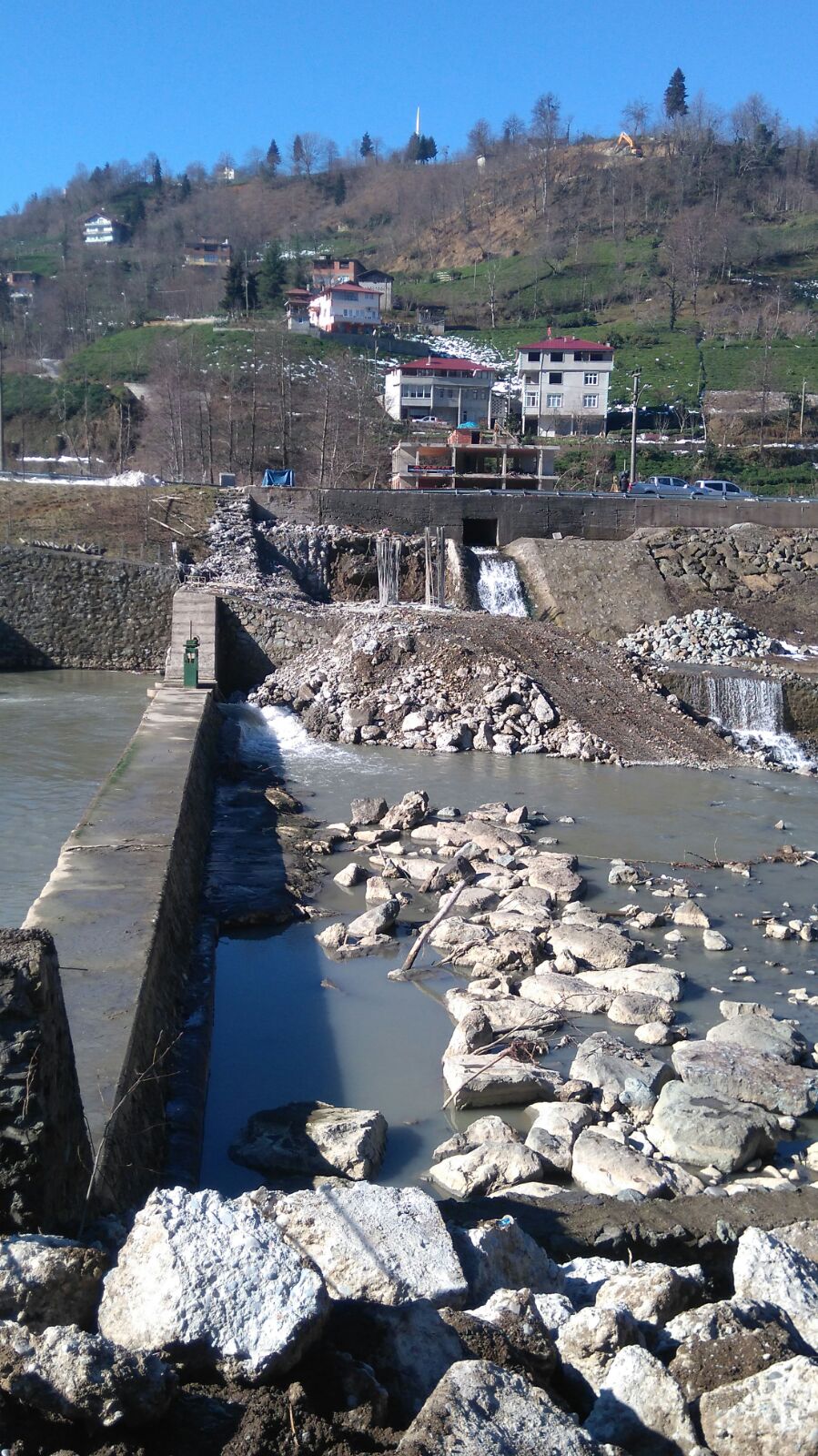 Yetkililerle ile temasa geçen Alkan’a Devlet su işleri Trabzon bölge Müdürü Mahmut berber tarafından hemen ekip gönderilirken gelen ekipler Solaklı göletlinde meydana gelen tahribatı gidermeye başladı.